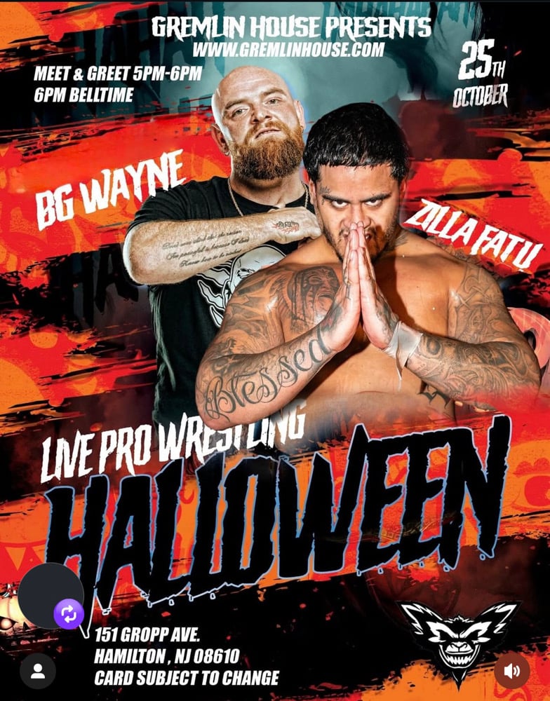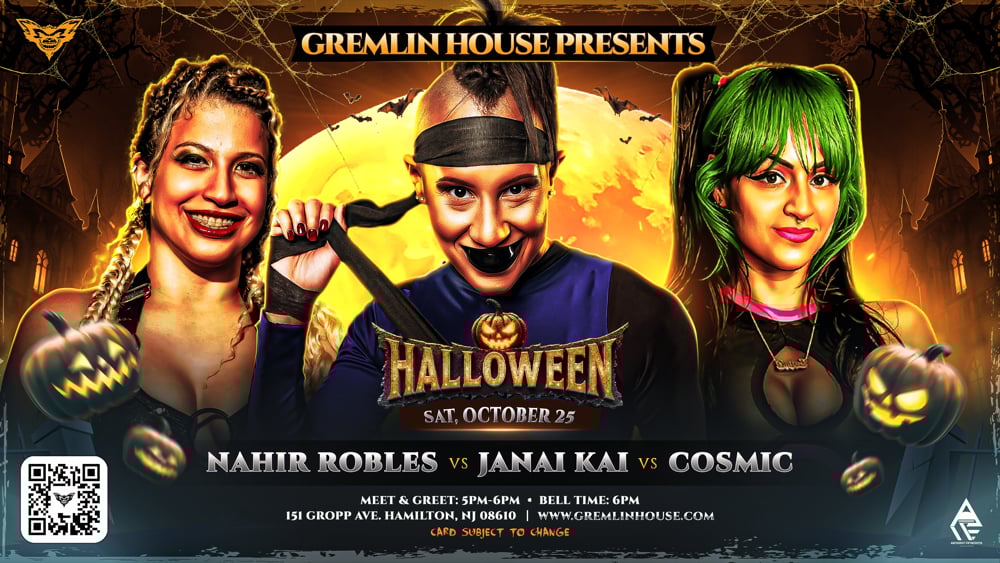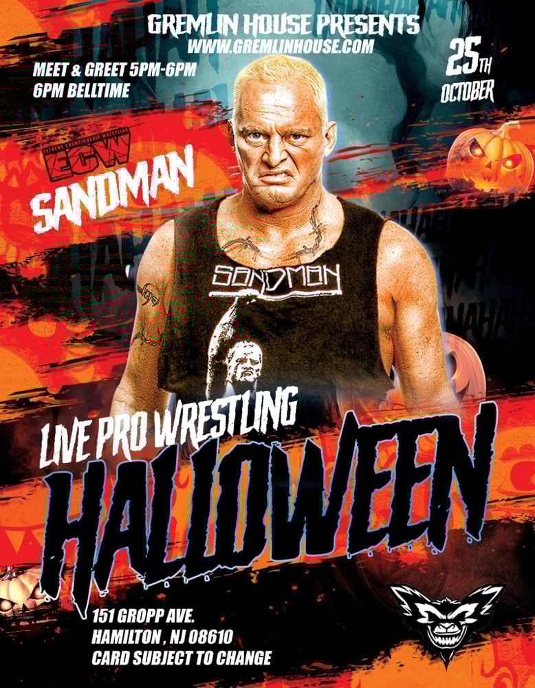One ticket for Gremlin House Wrestling presents: HALLOWEEN live pro wrestling October 25th 2025 at St Raphael’s in Hamilton New Jersey. Processing fees included in ticket price.