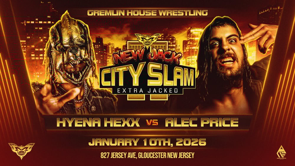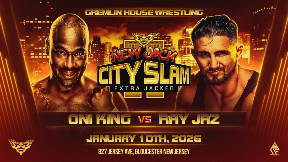 The greatest HOLIDAY GIFT 🎁 is here❗️1x Ticket for Gremlin House Wrestling presents “New Jack City Slam Extra Jacked” Live Pro Wrestling January 10th 2026❗️Location: 827 Jersey Ave Gloucester New Jersey❗️Bell Time 6:30 pm❗️Processing fee included in ticket price❗️